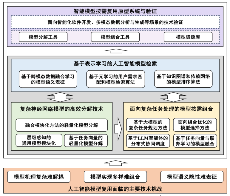 AI models are increasingly treated as reusable software components, yet both large-scale pretraining and task-specific fine-tuning face limitations for efficient reuse at scale. We advocate a modular "decompose + compose" paradigm to enable on-demand reuse and improve the development efficiency of intelligent software. Given an application task and a pool of candidate models, we address three key problems: selecting appropriate reuse granularity to avoid unnecessary overhead; composing multiple models to solve complex tasks beyond a single model’s capability; and accurately retrieving and matching relevant models. We focus on model modularization, model composition, and model retrieval, and will develop practical methods and tools to enable efficient model reuse across domains.